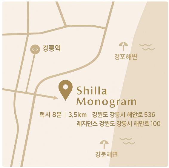 신라모노그램 강릉은 동해바다 오션프런트 입지 + 리조트형 부대시설 + 도시 접근성이 균형 잡힌 신개념 숙박지입니다. 호텔형의 편의성과 레지던스형의 실용성을 비교해 **여행 목적(휴양/가족/미식/액티브)**에 맞춰 선택하세요.