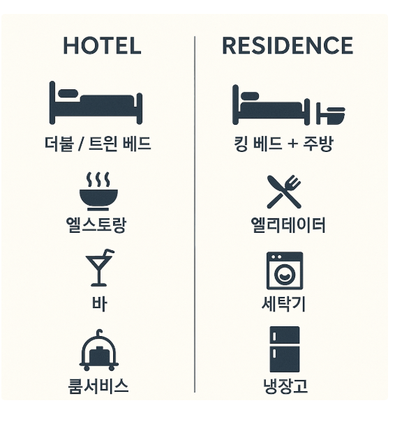 객실 선택법: 호텔 vs 레지던스